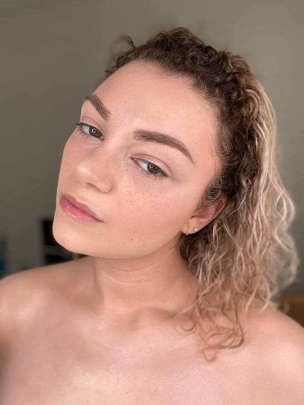 Un travail centré sur la peau. Le teint est unifié tout en conservant sa texture naturelle. Les taches de rousseur viennent rythmer le visage et apporter de la dimension sans surcharge. Les sourcils sont structurés avec précision pour encadrer le regard sans le durcir. Les points de lumière sont placés stratégiquement afin de capter l’éclat sans excès. Une base polyvalente, pensée pour évoluer : minimaliste dans sa version la plus pure, plus affirmée lorsqu’on intensifie les lèvres et le blush. Un maquillage qui démontre qu’élégance et simplicité peuvent coexister.