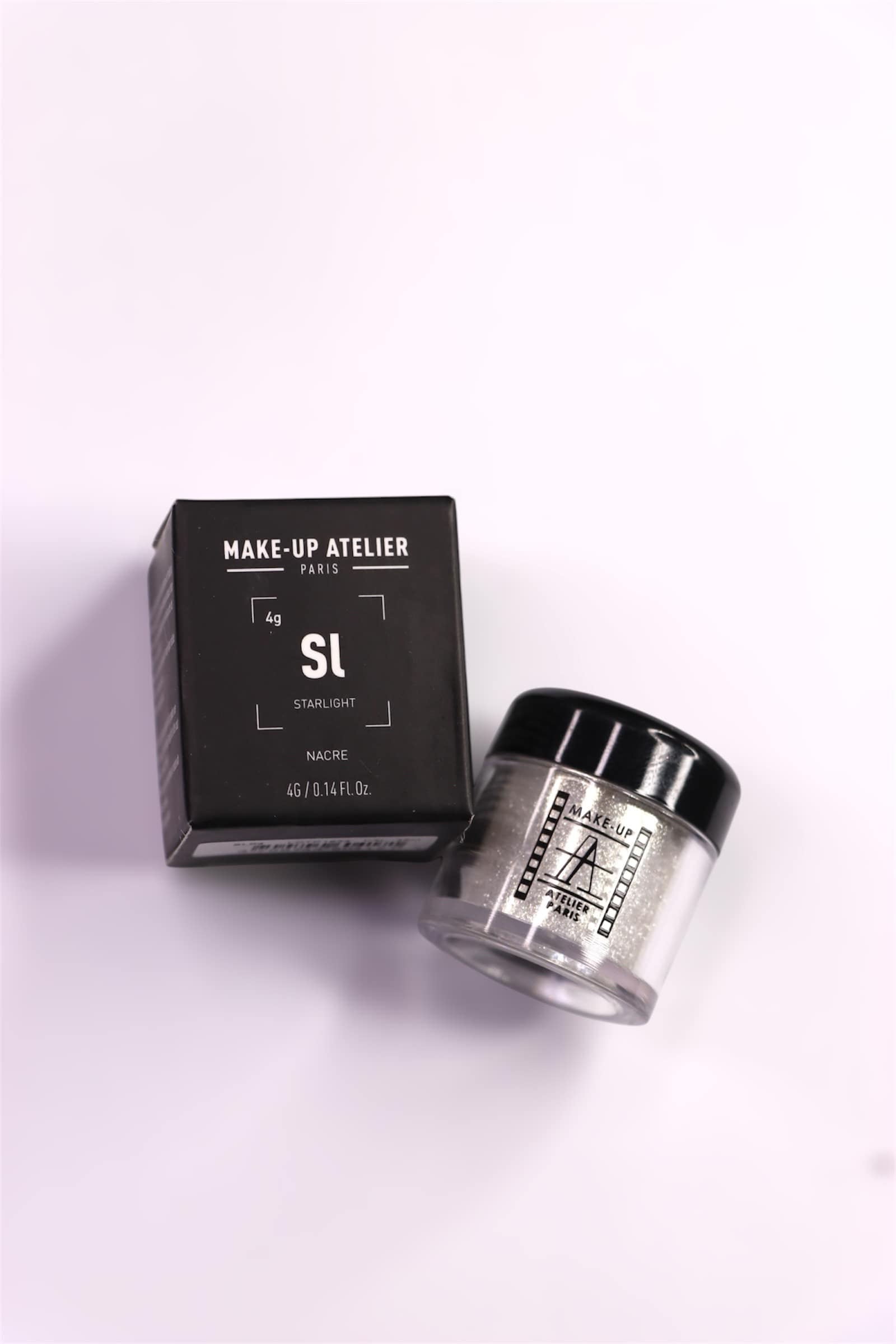 Les paillettes blanches dorées peuvent s’appliquer sur les paupières, les joues et les lèvres.